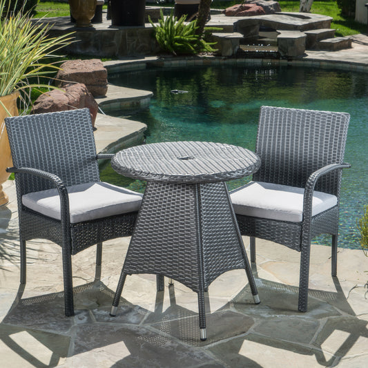 Portola Outdoor 3 Piece Grey Wicker Bistro Set with Cushions