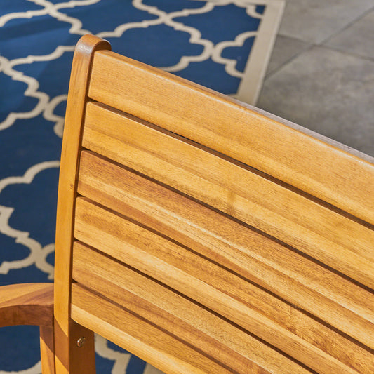 Ryan Outdoor 6-Seater Rectangular Acacia Wood Dining Set, Teak Finish