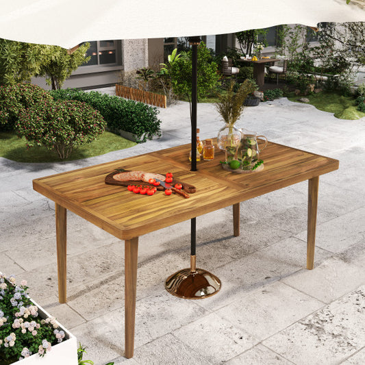 Janlish Modern Outdoor Patio Acacia Wood Dining Table with Umbrella Hole