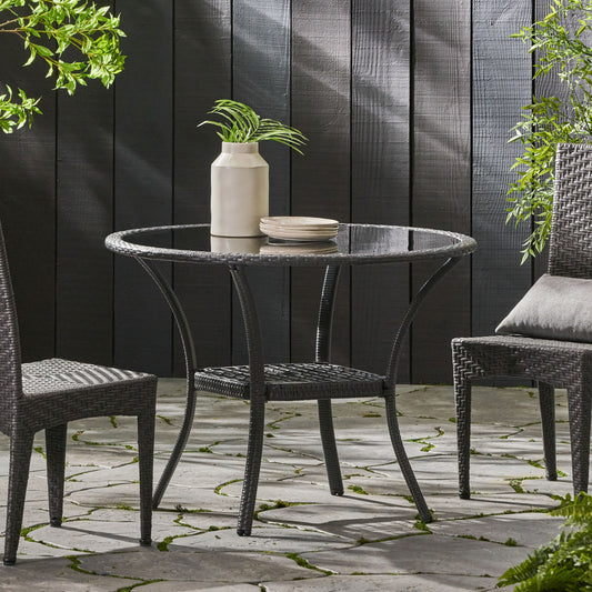 Kanza Outdoor Brown Wicker Round Dining Table