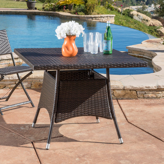 Kanasca Outdoor Multi Brown Polyethylene Square Dining Table