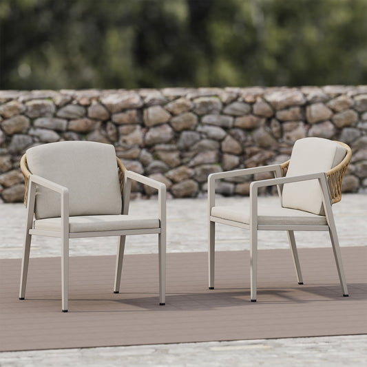 Coral Bay Outdoor Wicker Dining Chairs w/ Aluminum Frame (Set of 2)