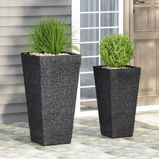 Tengren Outdoor Large and Medium Cast Stone Planters, Set of 2, Gray