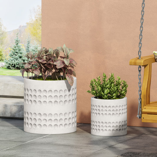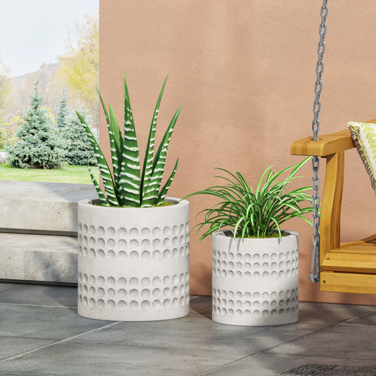 Toland Outdoor Modern Cast Stone Planters (Set of 2)