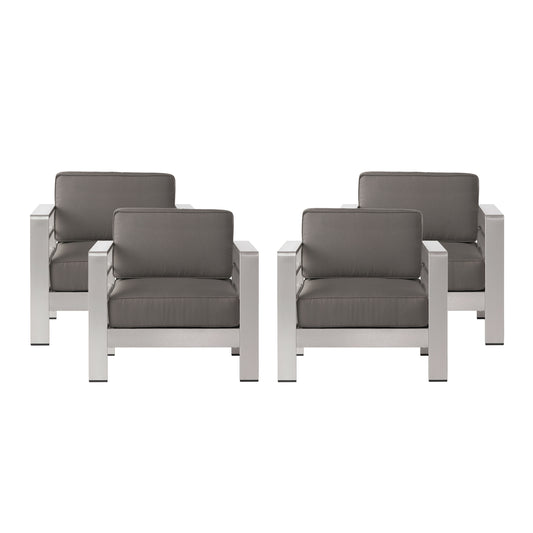 Crested Bay Outdoor Gray Aluminum Club Chairs with Water Resistant Cushions