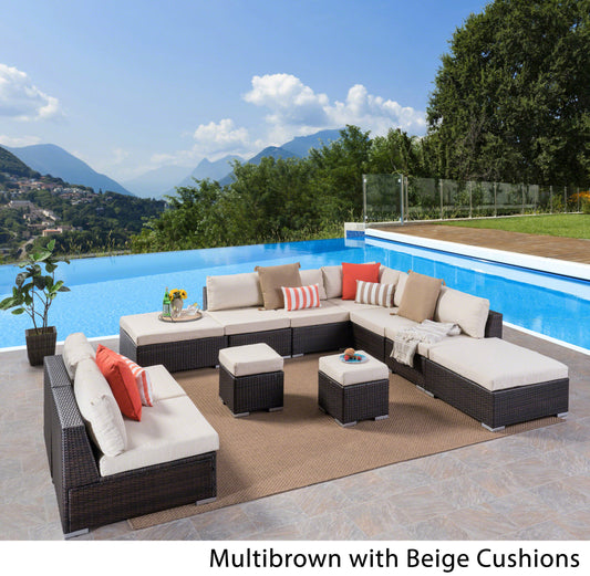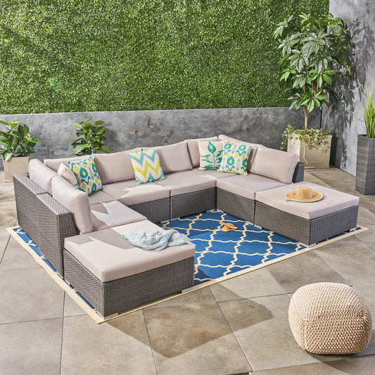 Tom Rosa Outdoor 8 Seater Wicker Sectional Sofa Set with Cushions