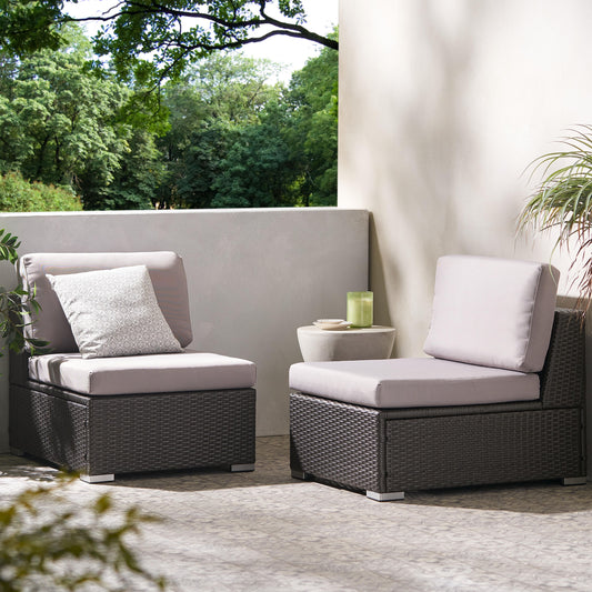 Avianna Outdoor Wicker Armless Club Chair with Cushions, Set of 2
