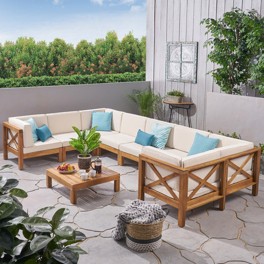 Brava Outdoor 8-Seater Acacia Wood Sectional Sofa Set with Coffee Table