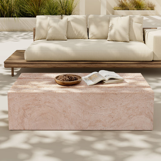 Amethey Rectangular MGO Coffee Table – Durable Weather-Resistant Composite Design for Versatile Indoor and Outdoor Modern Minimalist Living Spaces