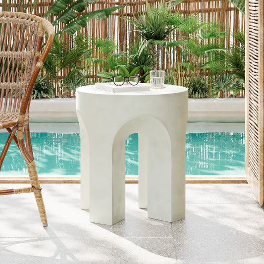 Boniare Outdoor Lightweight Concrete Side Table, Antique White