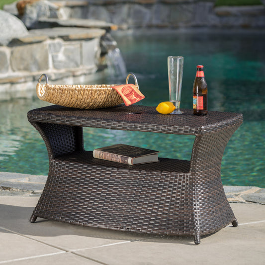 Banta Outdoor Modern Wicker Shelf Side Table with Umbrella Hole