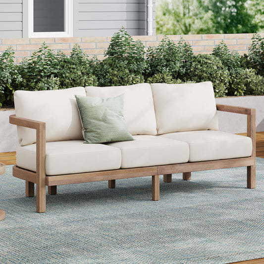 Tirver 3-Seater Outdoor Acacia Wood Patio Sofa with Cushions