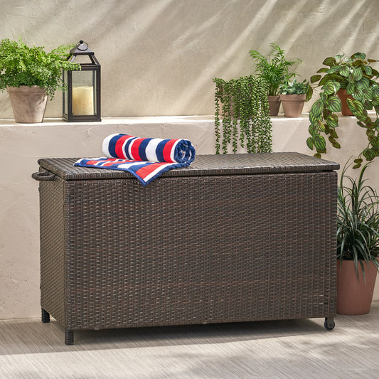 San Louis Obispo Outdoor Square Multi-Brown Wicker Storage Box w/ Zipped Lining