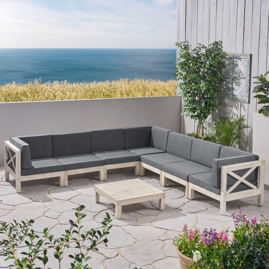 Dale Outdoor 7 Seater Acacia Wood Sectional Sofa Set