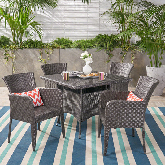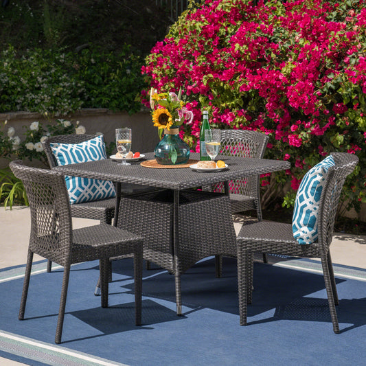 Anne Outdoor 5 Piece Wicker Dining Set, Grey