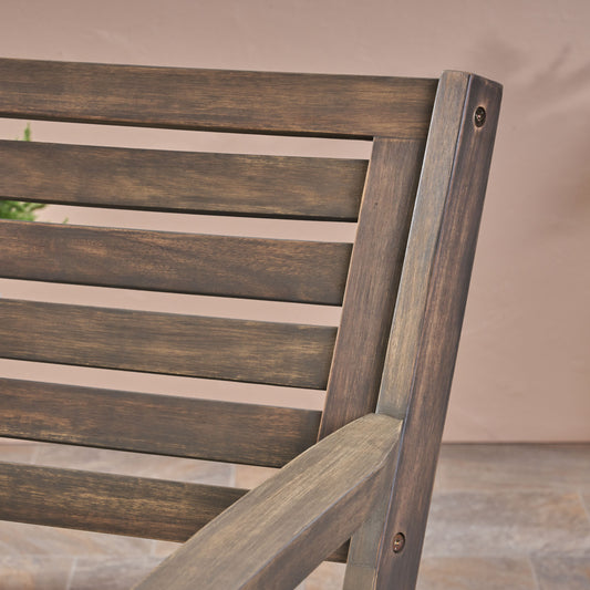 Jared Outdoor 3 Piece Wood and Wicker Bistro Set, Gray and Gray