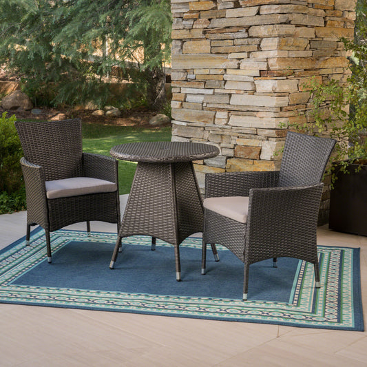 Hale Outdoor 3 Piece Wicker Bistro Set, Grey