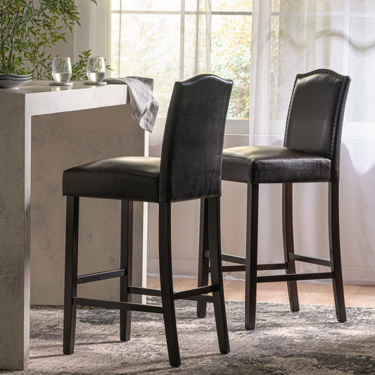 Kainu Brown Leather Barstools, Set of 2