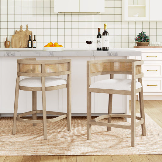 Isidore Wood And Rattan Upholstered Arm Counter Stools,Set of 2