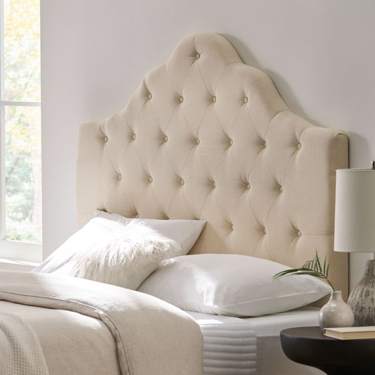 Orlban Contemporary Button Tufted Beige Fabric Queen/Full Headboard