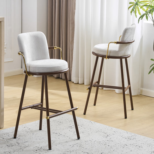Chaya Indoor Upholstered Bar Stool with Metal Frame, Walnut Finished and Beige Upholstery, Set of 2