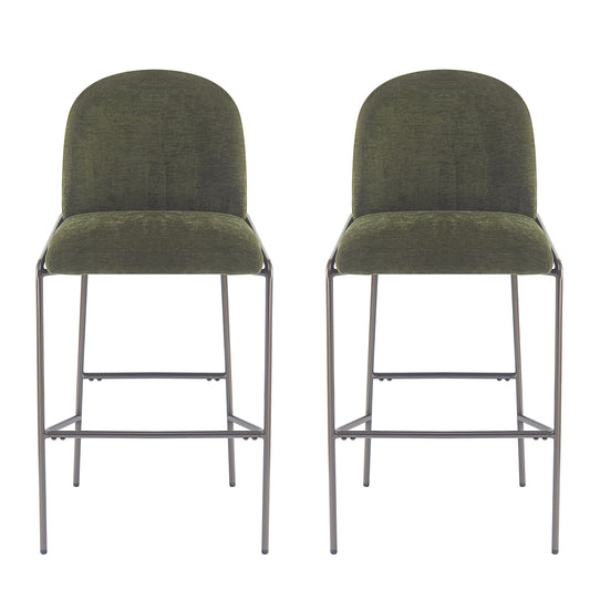 Galence Indoor Metal Upholstered Barstool, Antique Bronze Finish Frame, Set of 2