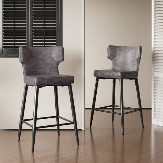 Kilrath Upholstered Wingback Bar Stools with Footrest, Powder Coated Iron