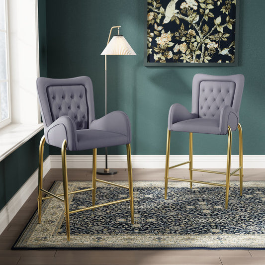 Kilmore Modern Upholstered Cushioned Velvet Counter Stool with Footrest & Tufted Back