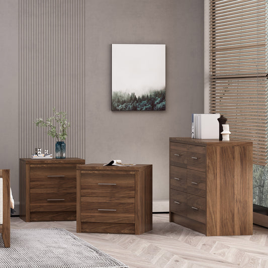 Marlette Modern 3 Piece 3 Drawer Dresser and Nightstand Bedroom Set