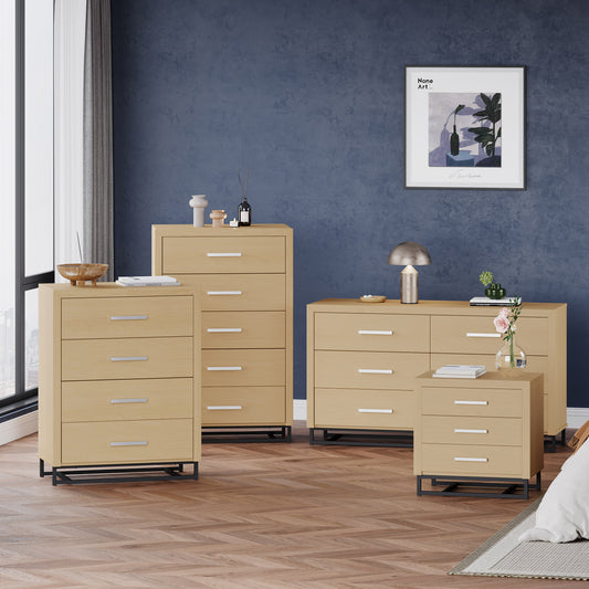 Demijen Modern Industrial 3 Piece 4 Drawer Dresser and Nightstand Bedroom Set, Walnut and Matte Black