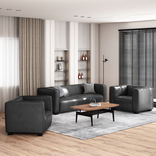 Minkler Contemporary Faux Leather 3 Piece Living Room Sofa Set