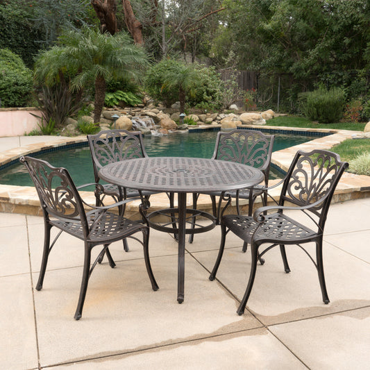 Calandra Outdoor 5 Piece Bronze Cast Aluminum Circular Dining Set