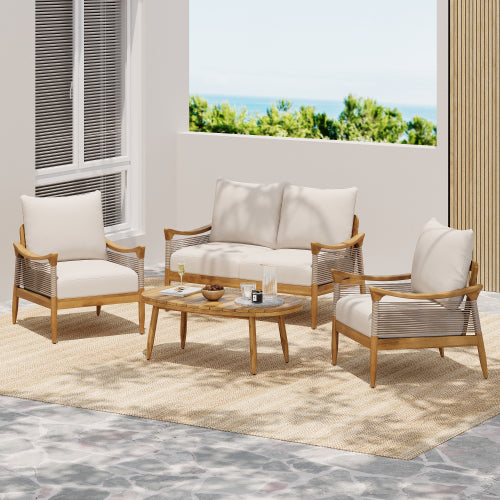 Opality Outdoor Acacia Wood Conversation Set,with Coffee Table,cushion