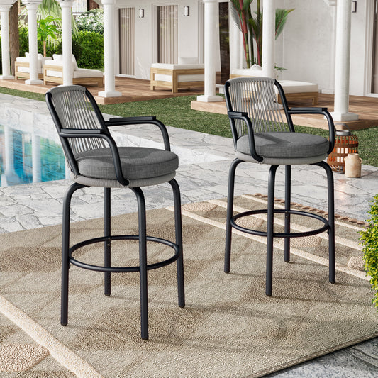 Halcyon 29" Outdoor Patio Bar stools with PE Rattan Rope Weave, Set of 2