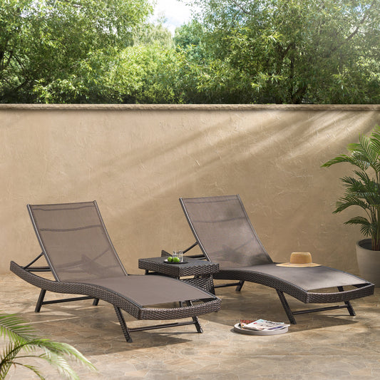Burnham Outdoor 3pc Brown Mesh Chaise Lounge Chairs Set
