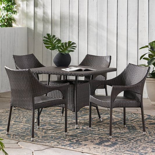 Clayton Outdoor 5pc Multibrown Wicker Square Dining Set