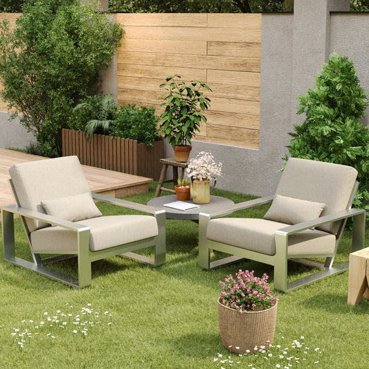 Therone Aluminum Outdoor Patio Club Chair with Beige Cushions