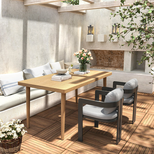Sagaree Modern Patio Dining Set - Table with 6 Chairs, Wood Finish