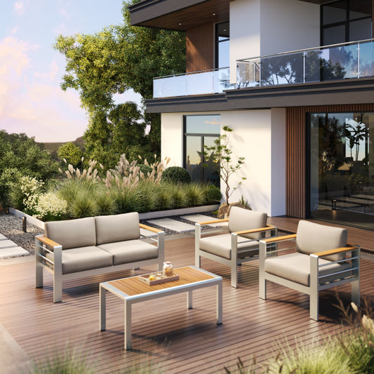 Elioo Outdoor Chat Set with 2x Club Chair Loveseat & coffe table