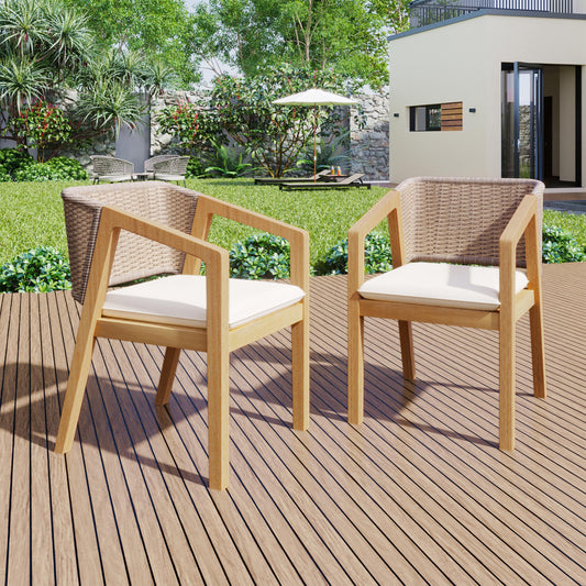 Seraphina Outdoor Patio Acacia Wood Braided Rope Dining Chairs, Set of 2