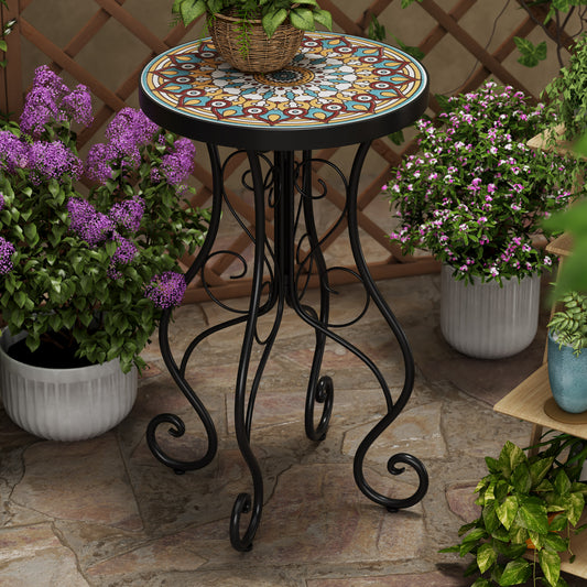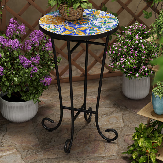 Caius Outdoor Patio Plant Stands, Ceramic Tile, Iron, Set of 3