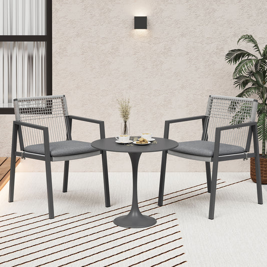 Evandera Modern Outdoor Patio Rope Weave Dining Chairs with Cushion, Set of 2
