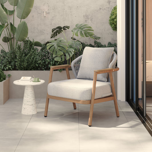 Willowe Teak Rope Weave Upholstered Outdoor Patio Club Chair with Pillow