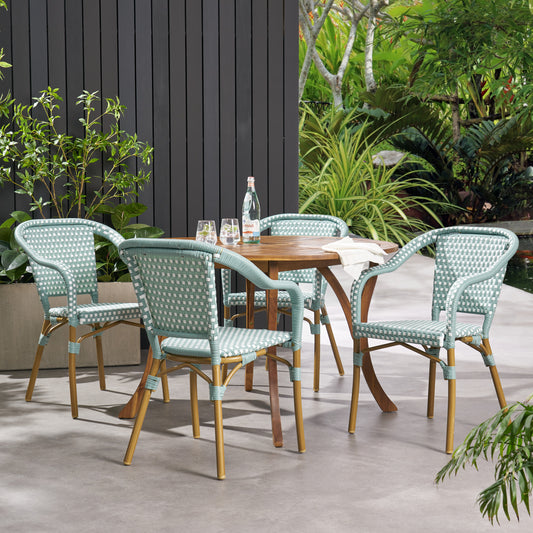 Mellie Outdoor Acacia Wood Circular Dining Table, Teak and Black