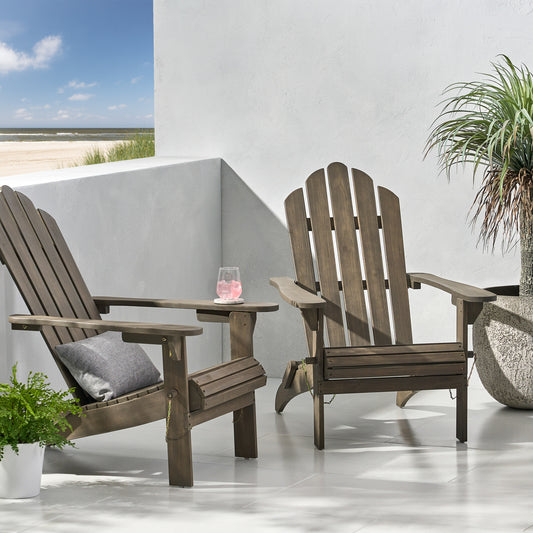 Cara Outdoor Acacia Wood Foldable Adirondack Chairs, Set of 2