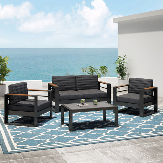 Neffs Outdoor Aluminum 4 Seater Chat Set, Black, Natural, and Gray