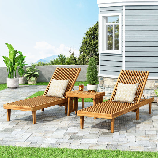 Addisyn Outdoor Acacia Wood 3 Piece Chaise Lounge Set