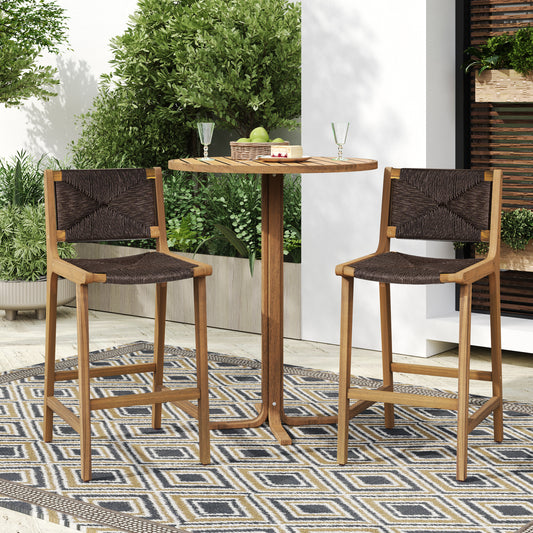 Willowmere Acacia Wood Outdoor Armless Barstool,Set of 2