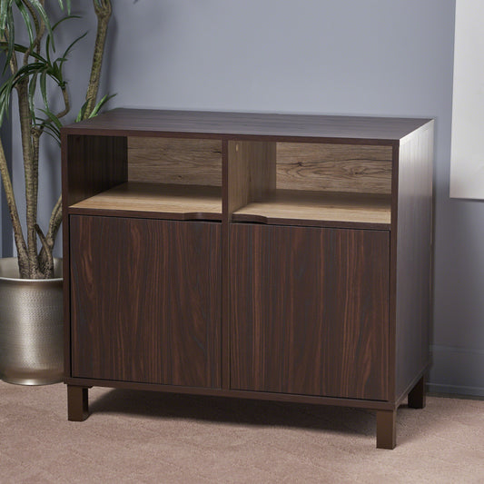 Provence 2-Shelf Walnut Finished Faux Wood Cabinet with Oak Interior