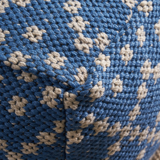 Harmony Cube Pouf, Boho, Blue and White Yarn